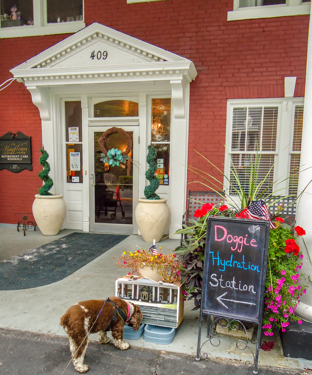 Food & Drink: Sweet Treats on Washington has a water bowl outside and you are allowed in the restaurant with your human. (they sell dog treats too!) Three other downtown restaurants have outdoor (not covered) areas for your dining pleasure: Blue Sky Bakery, Salerno, Pure Eats. and Heliotrope.